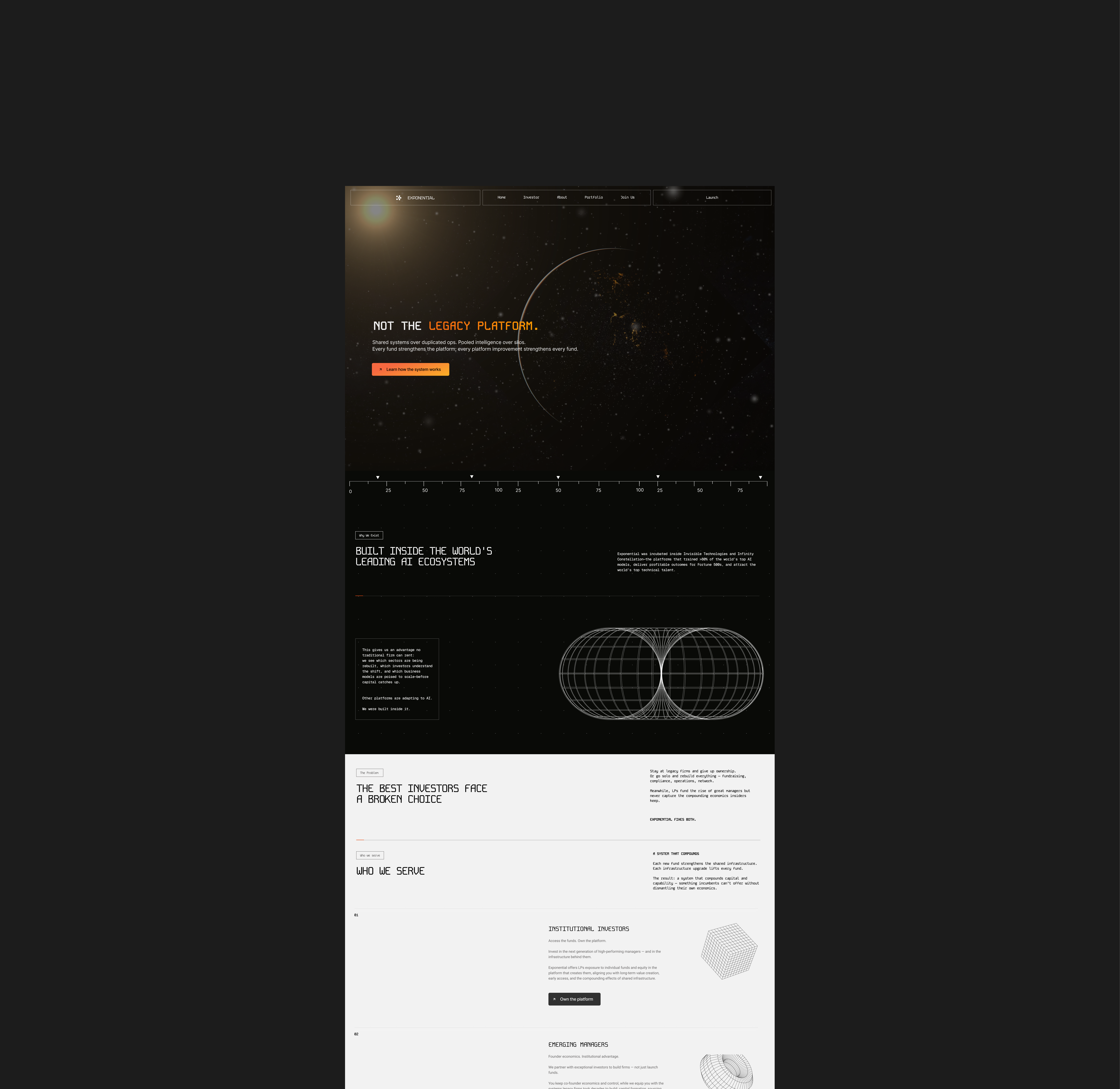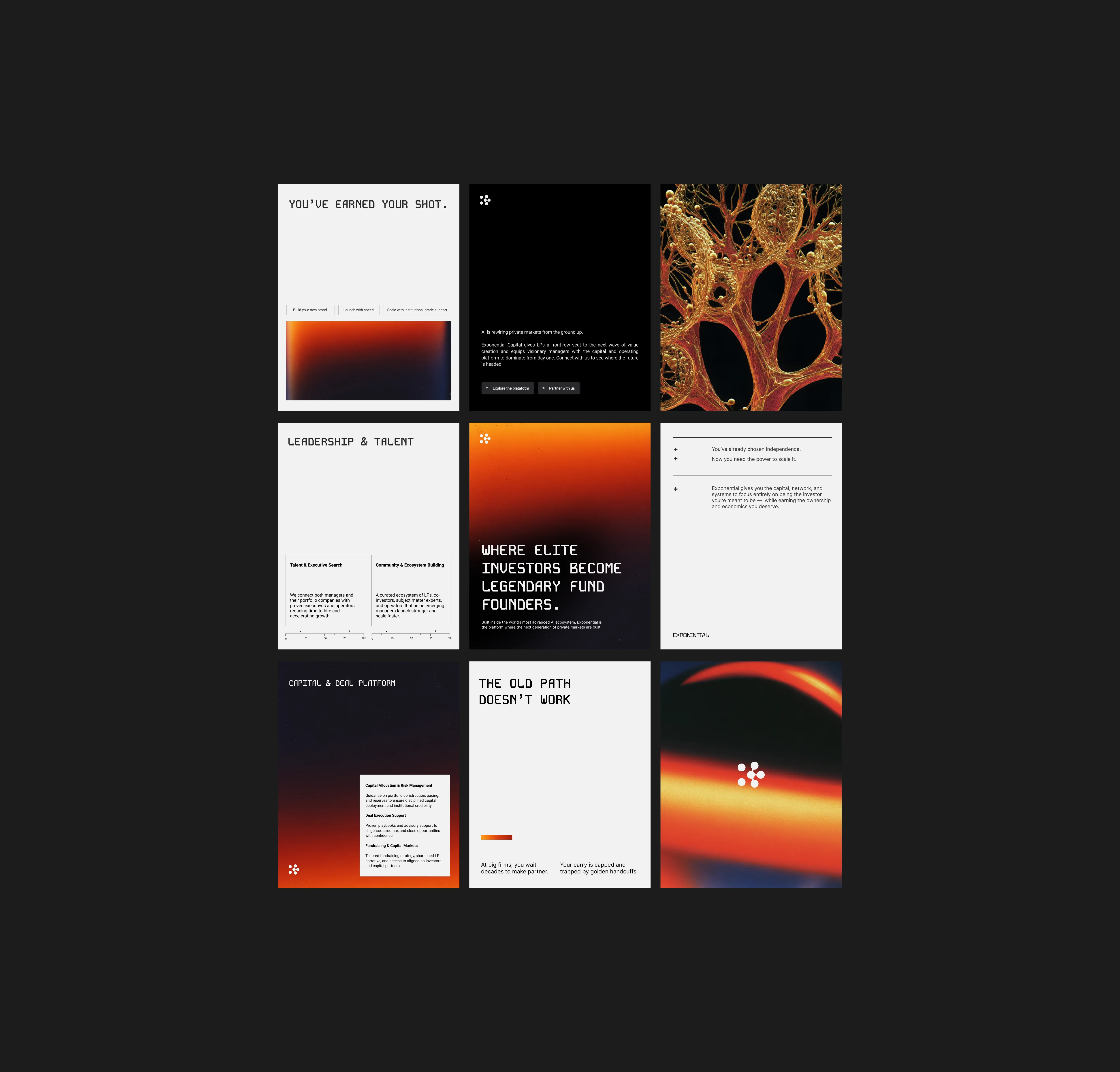 We partnered with Exponential to craft a distinctive brand identity, compelling voice, and seamless website experience for their groundbreaking platform—where elite investors become legendary fund founders. Built within the world’s most advanced AI ecosystems, Exponential provides world-class capital, infrastructure, and operating support to co-found the next generation of category-defining fund managers.