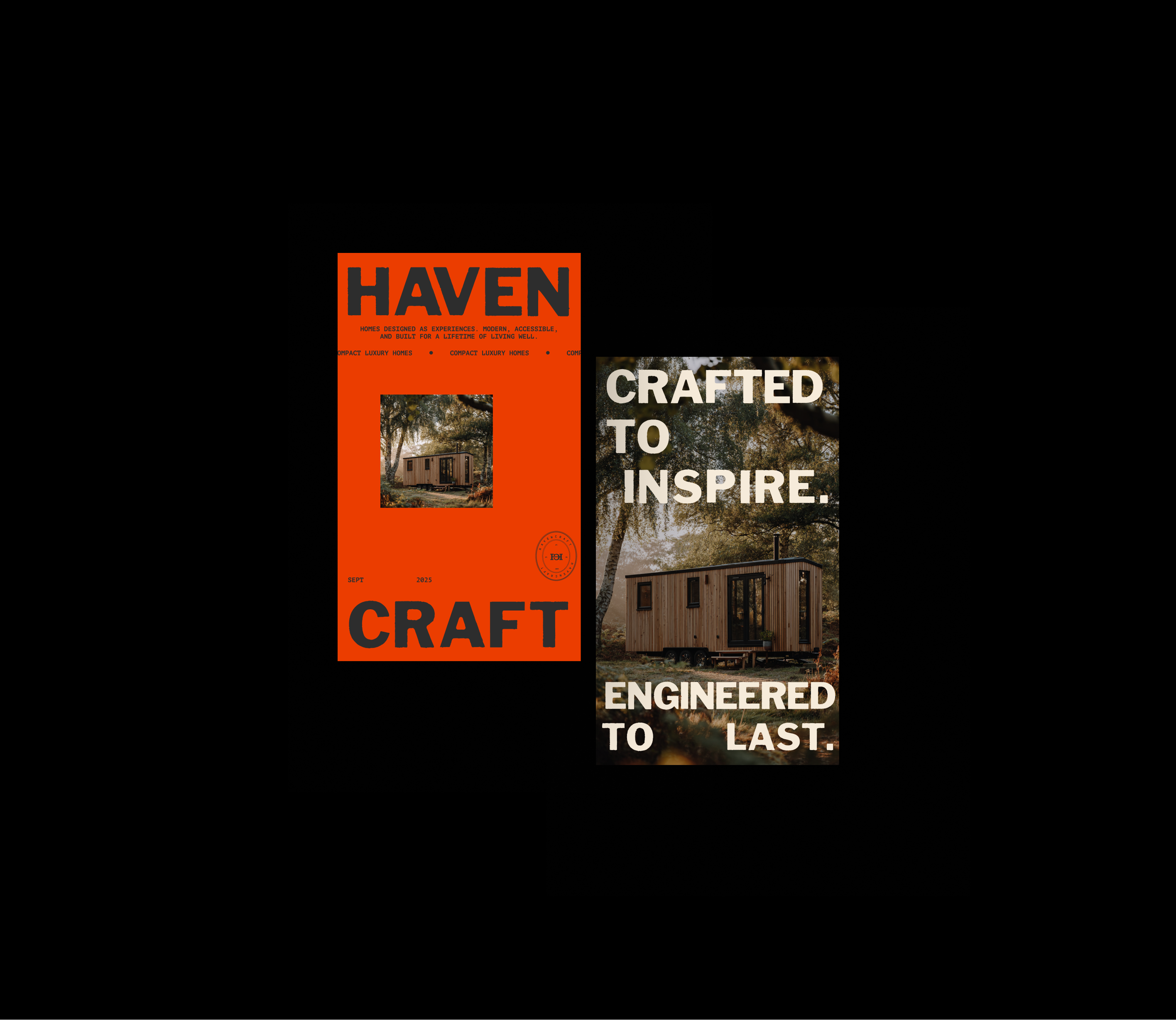 We partnered with Havencraft, a Canadian tiny home living community, to craft a brand and positioning strategy that reflects both lifestyle and purpose. The branding highlights the freedom, sustainability, and connection at the heart of the tiny home movement—balancing aspirational storytelling with practical messaging for investors and residents alike.