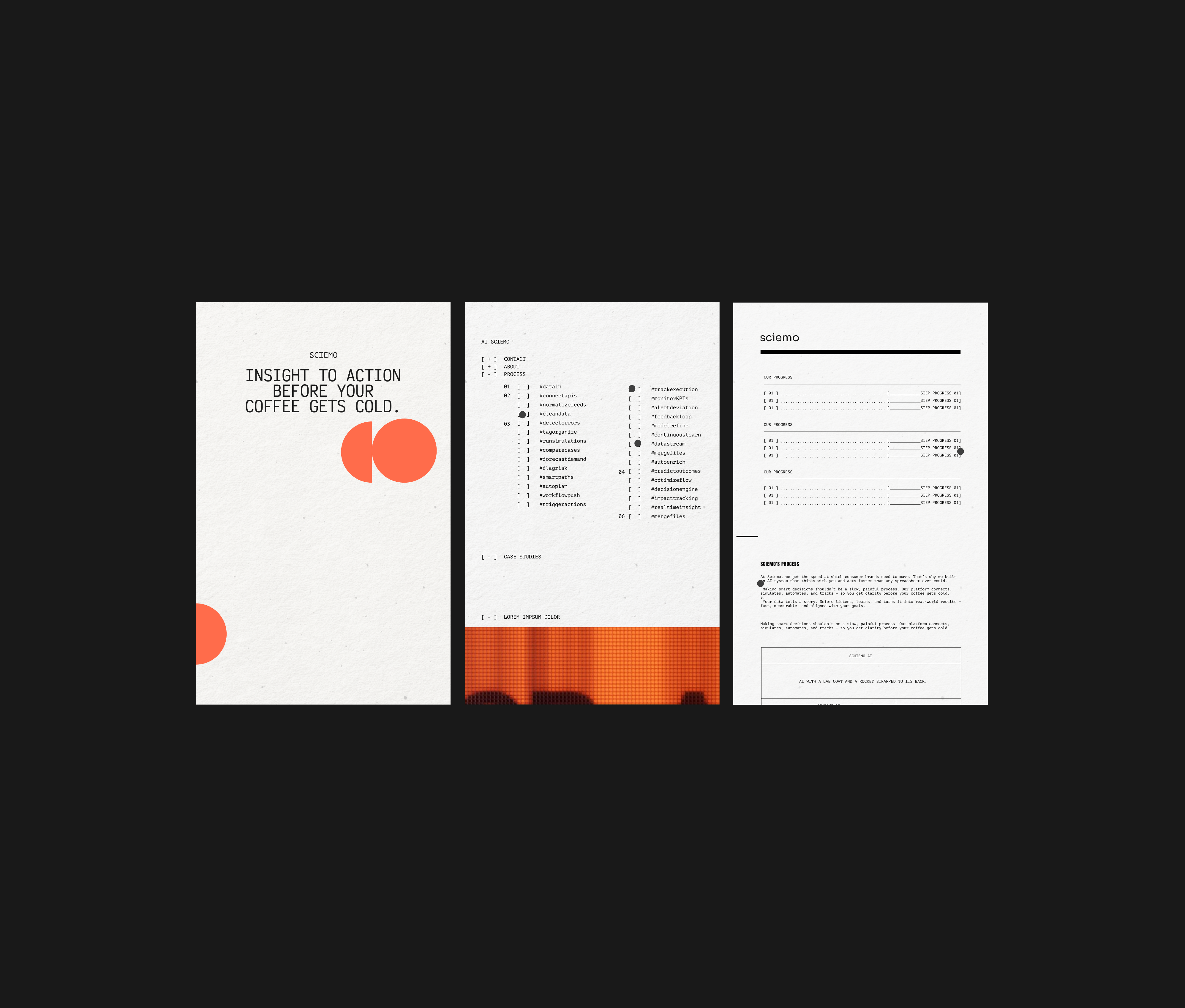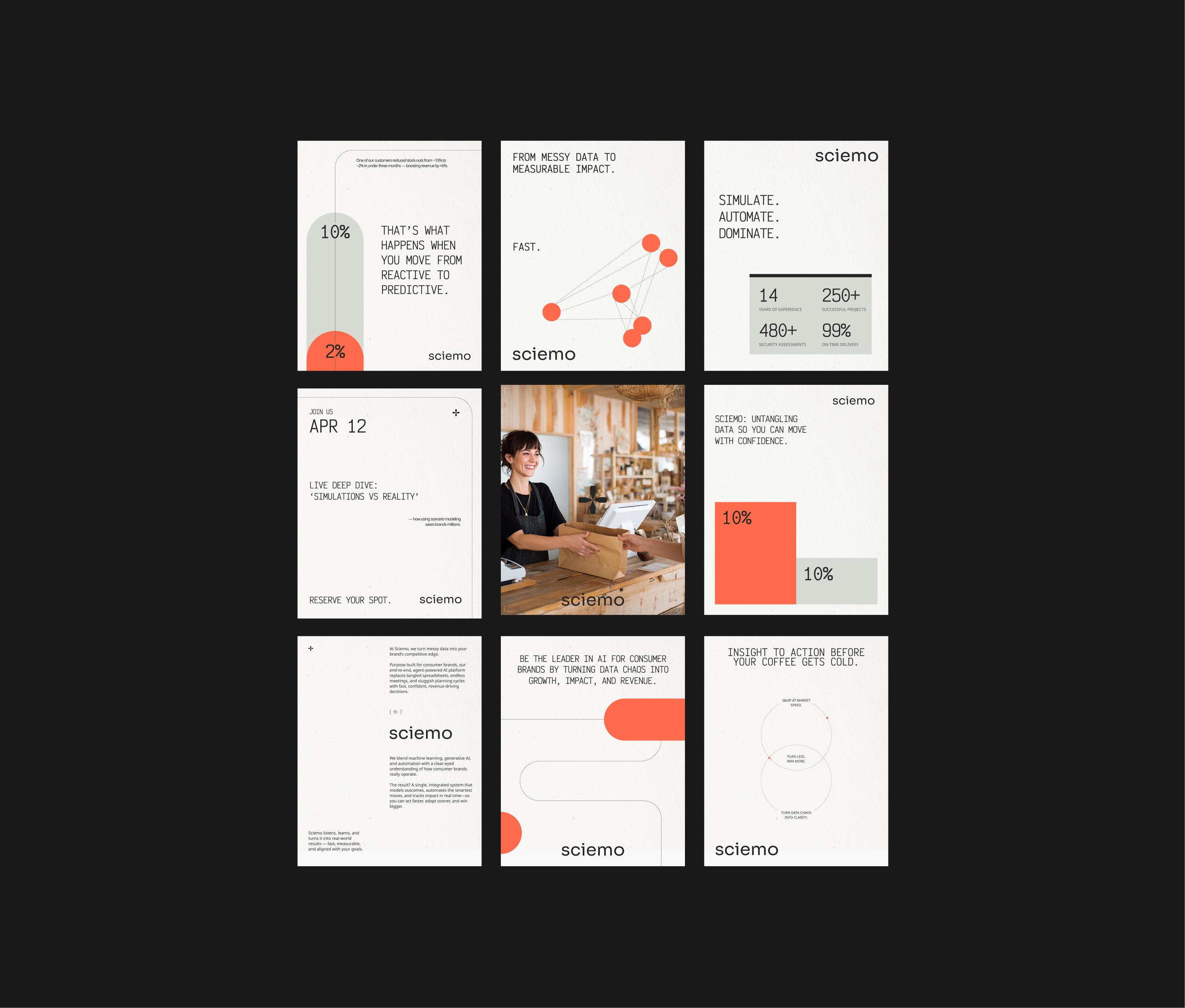 We partnered with Sciemo to bring their game-changing AI platform to life through brand, strategy, and web design. Together, we built a bold identity and narrative that captures Sciemo’s mission: to flip the switch on how consumer brands make decisions. From positioning and messaging to visual design, we crafted a brand that feels as powerful and intelligent as the product itself.